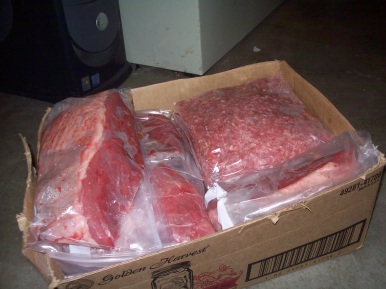 This meat (and probably the potatoes too) should get our little household through Christmas at least (my sister thinks ’til next spring, but I’m not so sure). As of right now, my mother’s deep freeze (which she is so gracious to let us make use of, our little freezer being STUFFED full) now contains 2 roasts, 2 packs of steaks, about 10 packs of stew/stir fry/bbq beef meat, 8 bags of ground beef, and 2 bags full of meatballs.